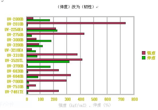 UV齊聚物的強(qiáng)度/韌性對(duì)比圖